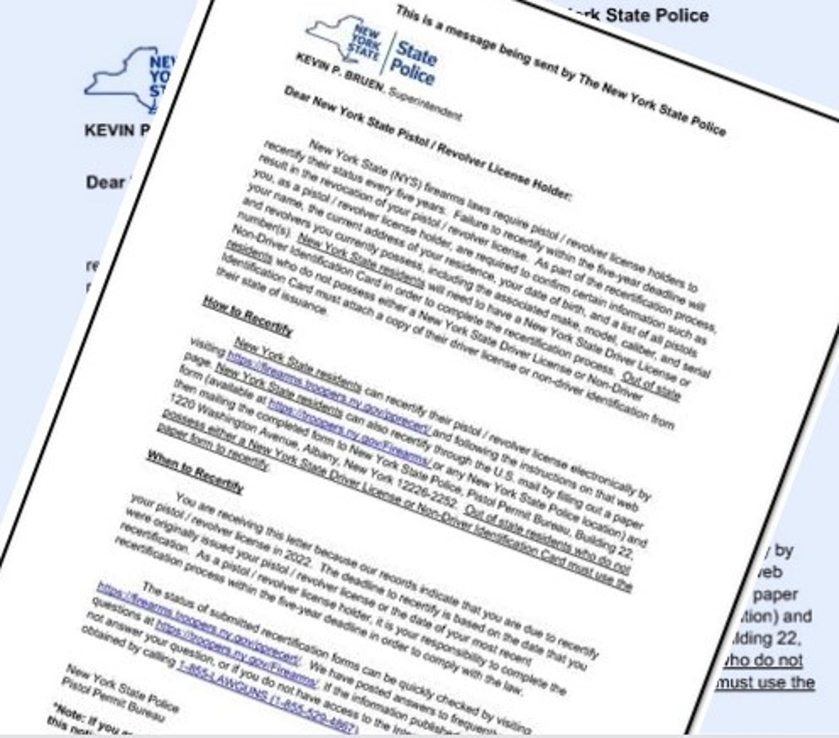 If in doubt about the veracity of the letter, or if the letter does not direct a permit holder to an official government website, the New York State Police advises that residents visit the New York State Police website on pistol permit recertification.