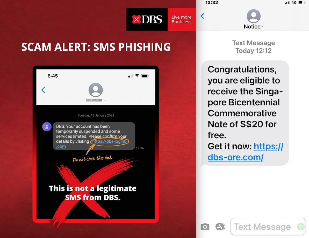 She noted that her mother was scammed by an SMS posing as DBS bank, wherein the receiver was “eligible to receive the Singapore Bicentennial Commemorative Note of S$20 for free.”