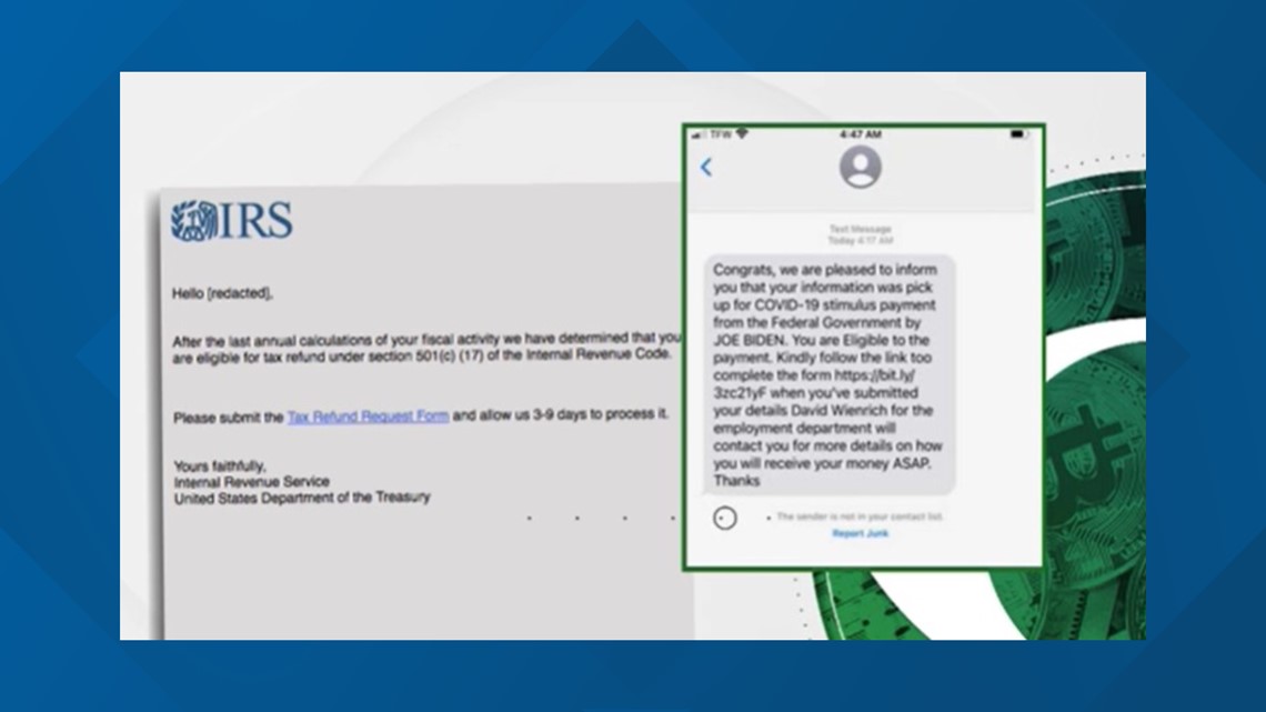 Millions of people have received fake emails or texts that appear to be from the IRS, but they are actually from criminals promising a tax refund or stimulus payment if you just click on a link.