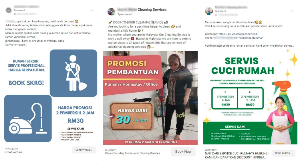 In Recommend.my’s investigation, over seven different ads for various cleaning companies were identified, all of which used the similar price of RM30 for four hours of cleaning work – an irresistible offer indeed!