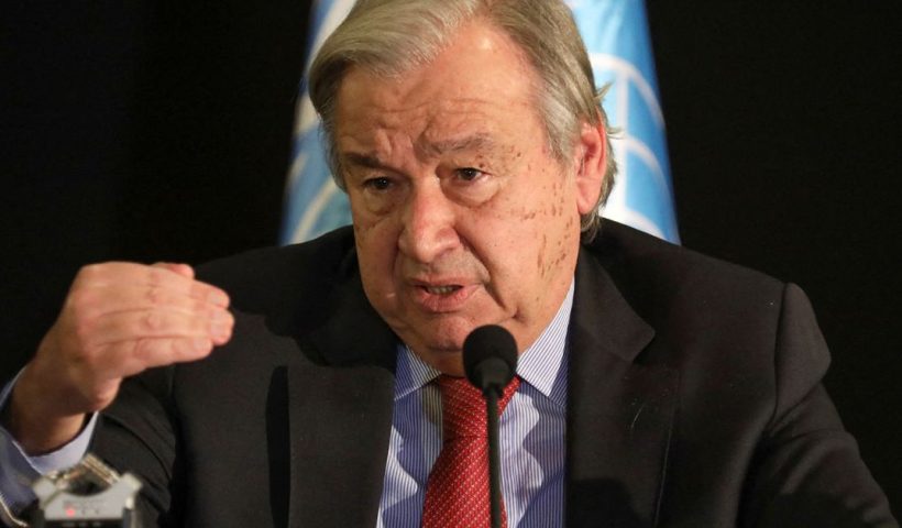 United Nations Secretary-General Antonio Guterres gestures as he attends a news conference at the end of his visit to Lebanon, in Beirut, Lebanon December 21,…