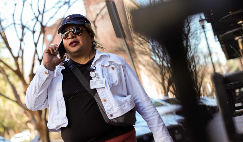 As the sun began to rise, a worker went down a row of people who were sleeping on the sidewalk, lowering his walkie talkie to…