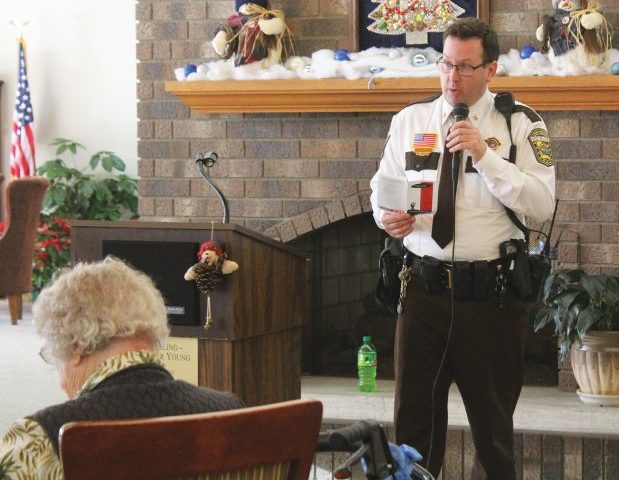 Photo by Deb Gau Sheriff Eric Wallen handed out pamphlets with tips on recognizing common scams and avoiding identity theft during a…