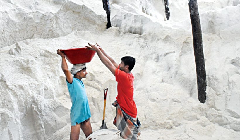 Crude salt bought from coastal producers in Cox’s Bazar for Tk 8.66 per kilogramme being processed to be labelled as “iodised” for sale at Tk…