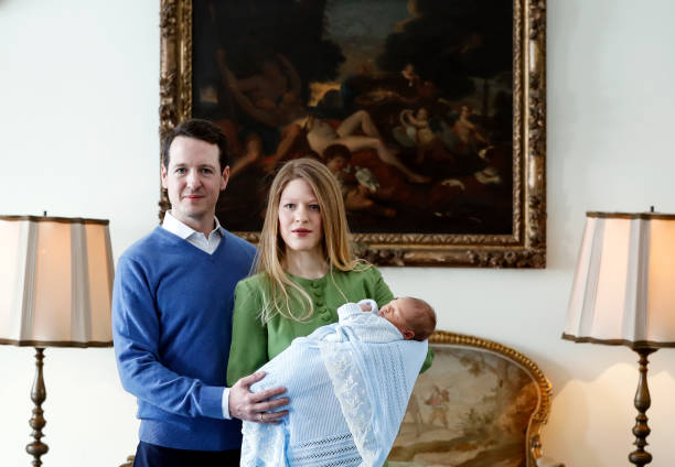 BELGRADE, SERBIA – MARCH 02: Prince Philip Of Serbia and wife Danica Marinkovic present their baby son Stefan at Royal Palace on March 2, 2018 in Belgrade, Serbia.