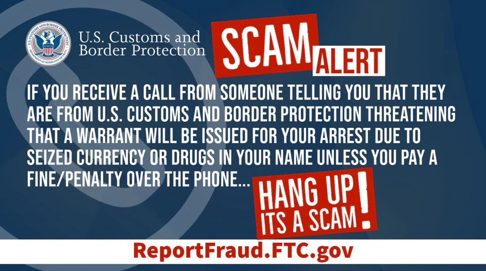 They say they have received numerous reports of callers posing as U.S. Border Patrol agents or CBP officers saying that they have intercepted a box of drugs and money with the prospective victim’s name on it, prompting them to speak to another officer or agent who then attempts to get their bank information.