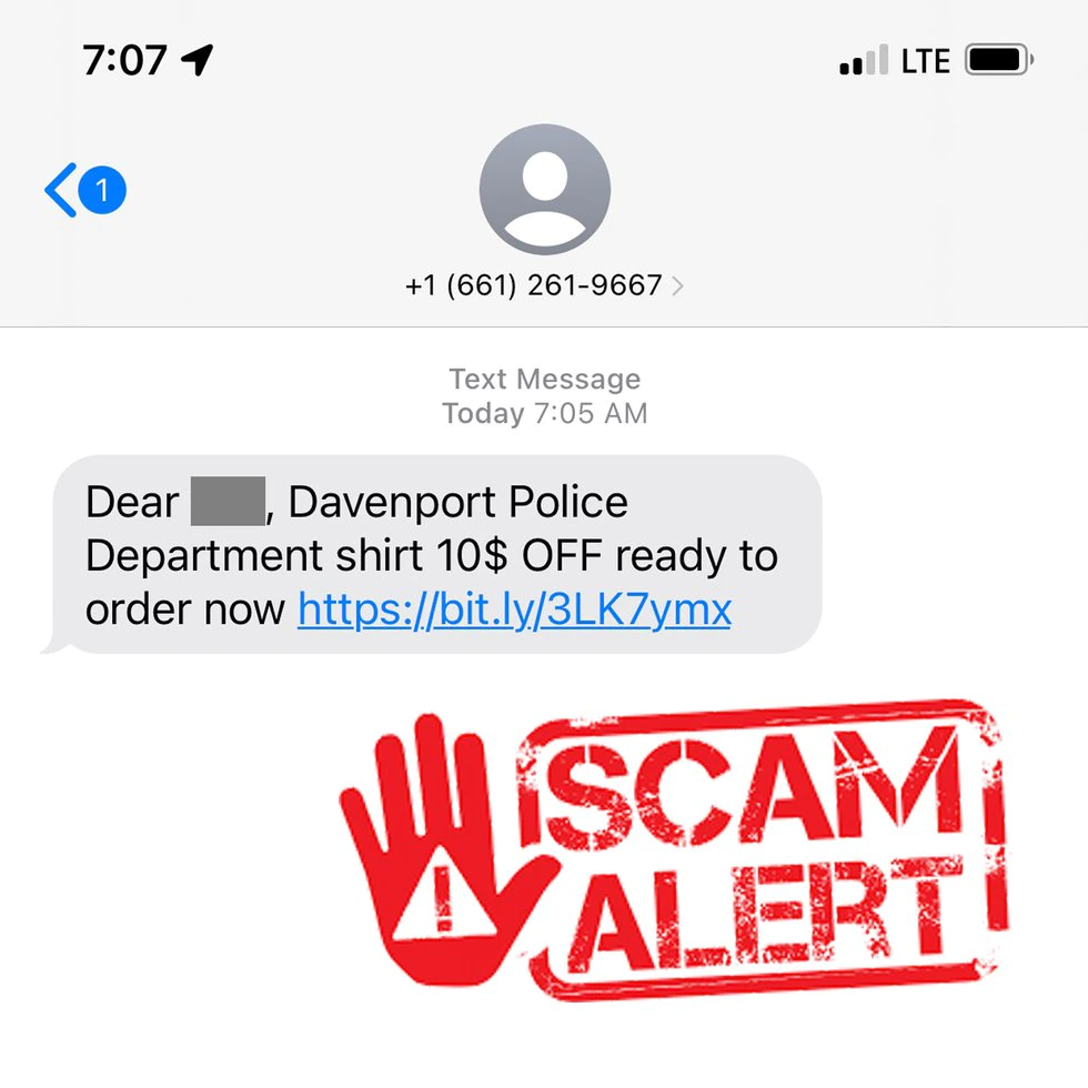 “If you receive this text message, delete it. Do not click the link, and do not provide any personal information on any associated website,” said Davenport Police Major Jeff Bladel. Neither the text or the link are associated with the agency.