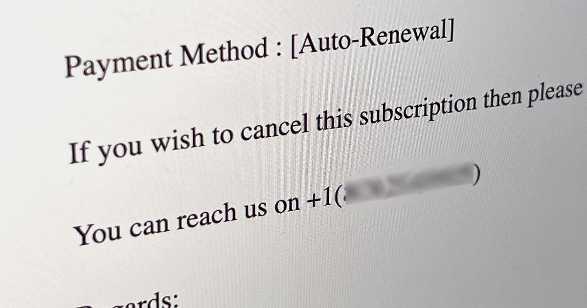 Another variation is from a company telling you that your subscription to their service has just renewed, and that if you’d like to cancel the subscription, here’s an 800-number so you can speak to a representative.