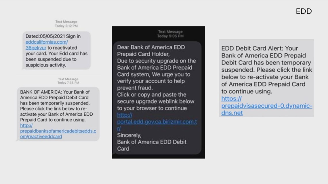 The scammers are texting EDD and Bank of America customers with fake messages and links to try and get personal information.