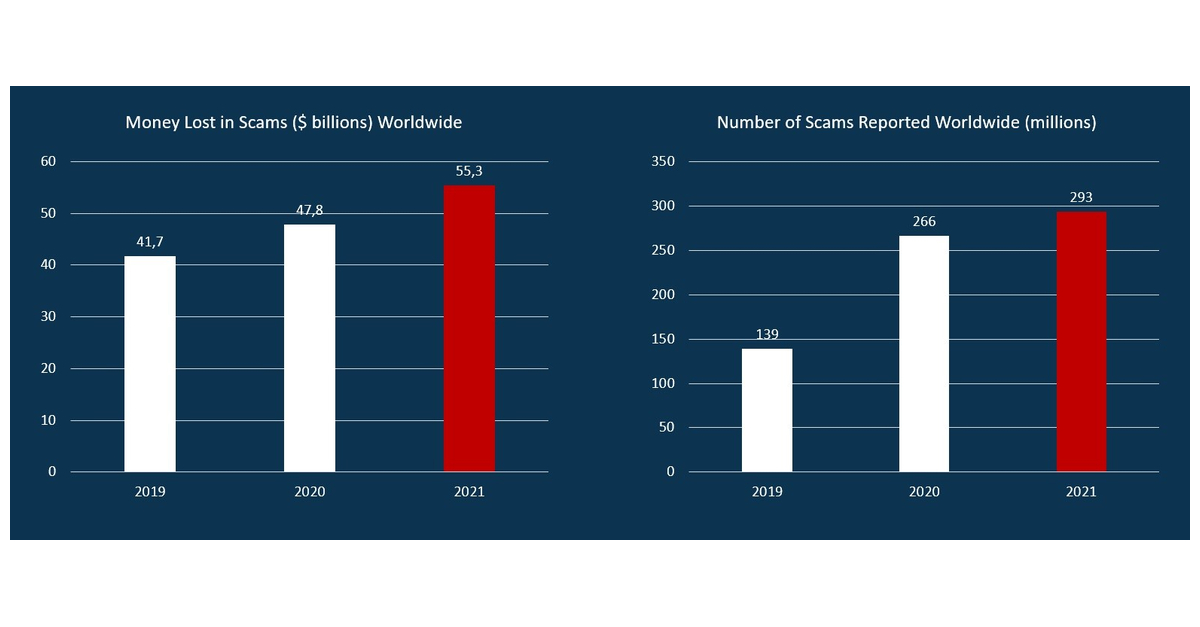 AMSTERDAM–(BUSINESS WIRE)–According to the Global State of Scams 2022 Report by the Global Anti Scam Alliance (GASA) and ScamAdviser amongst 48 countries, the scams reported increased by 10.2%, from 266 in 2020 to 293 million reports in 2021. The money lost in scams grew by 15,7%, from $47.8 billion in 2020 to $55.3 billion in 2021.