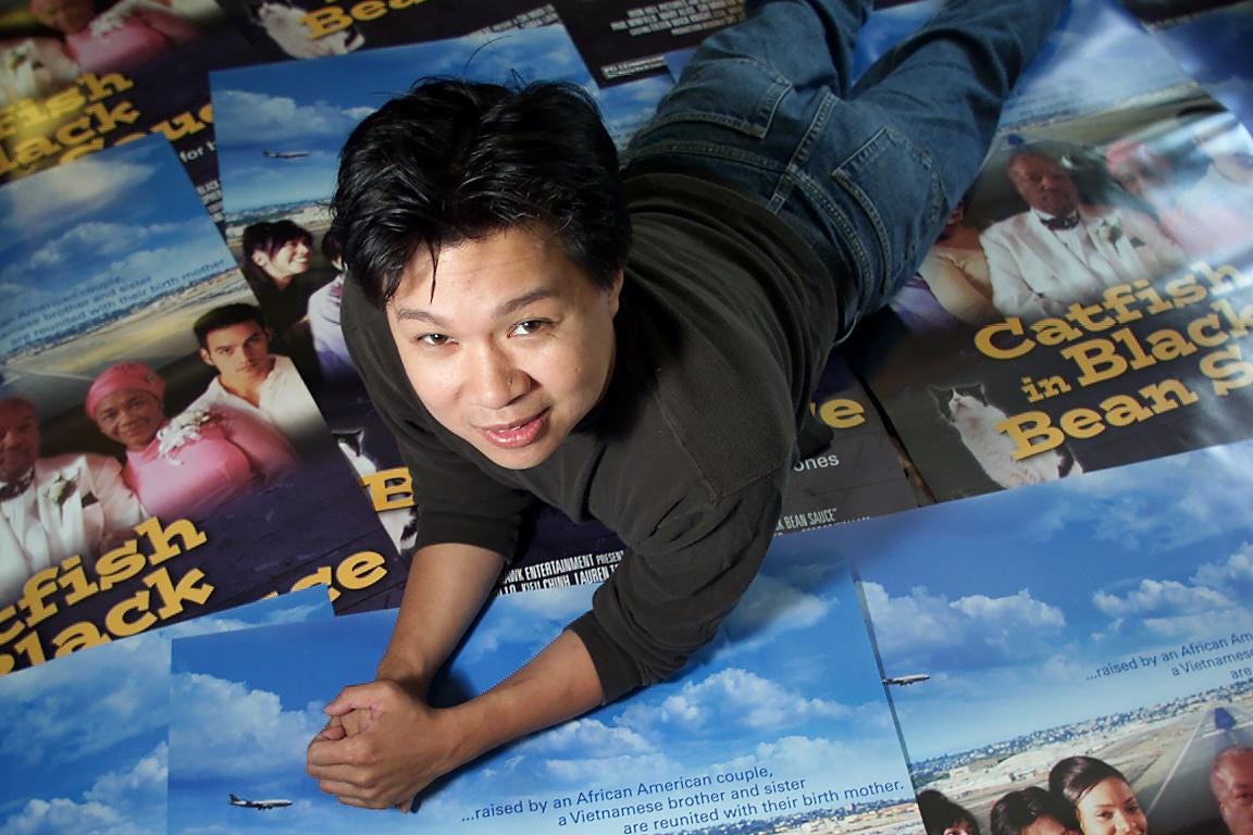 Director Chi Muoi Lo, with posters from his new movie “Catfish in Black Bean Sauce,” opening June … [+]