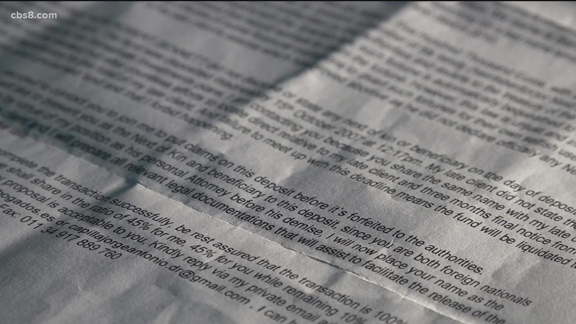 SAN DIEGO COUNTY, Calif. — A Nigerian scam lands in the mail of an Escondido man. He knew right away it was a scheme but not everyone does.