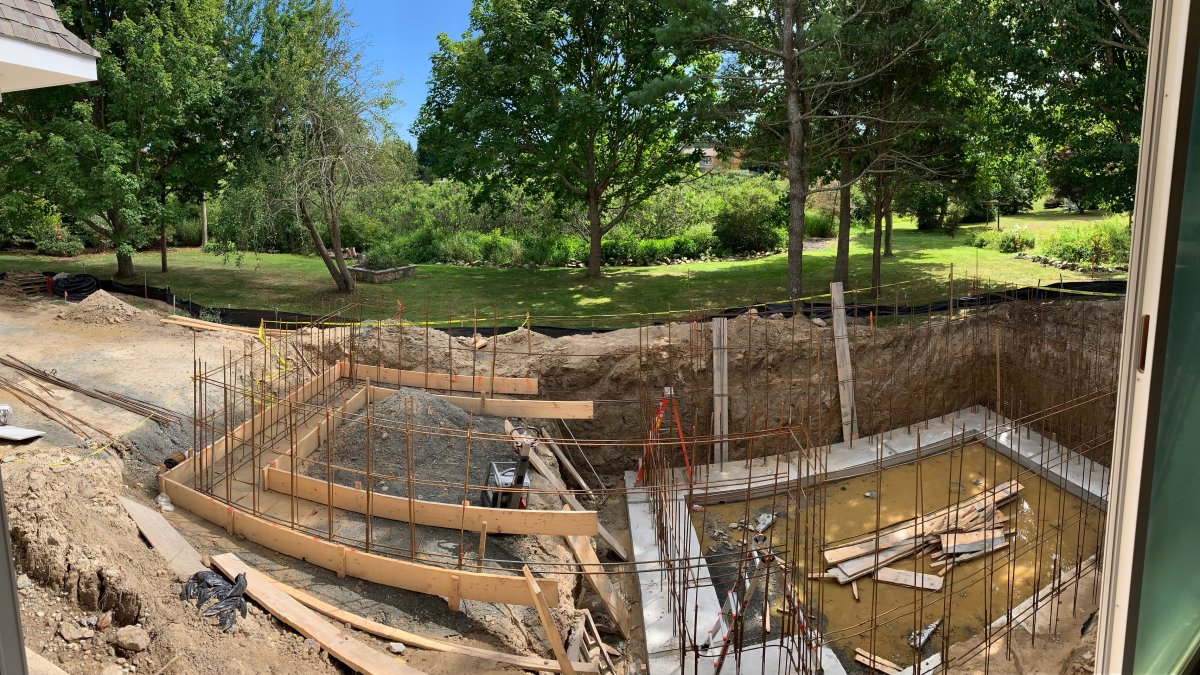 The partially-finished pool project at Beth Ferraro’s home in Orleans