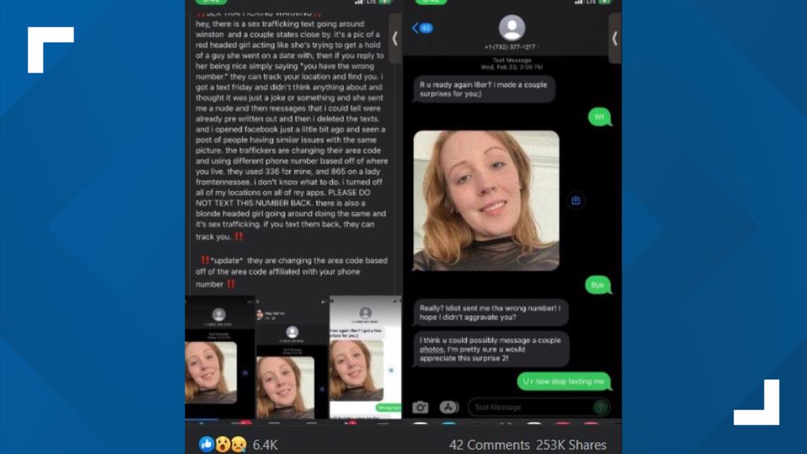 You’ve likely seen the post. It shows screenshots of a text claiming to be a sex trafficking warning. The sheriff’s department says if you either get the text or see the post, you should ignore it because it’s fake.