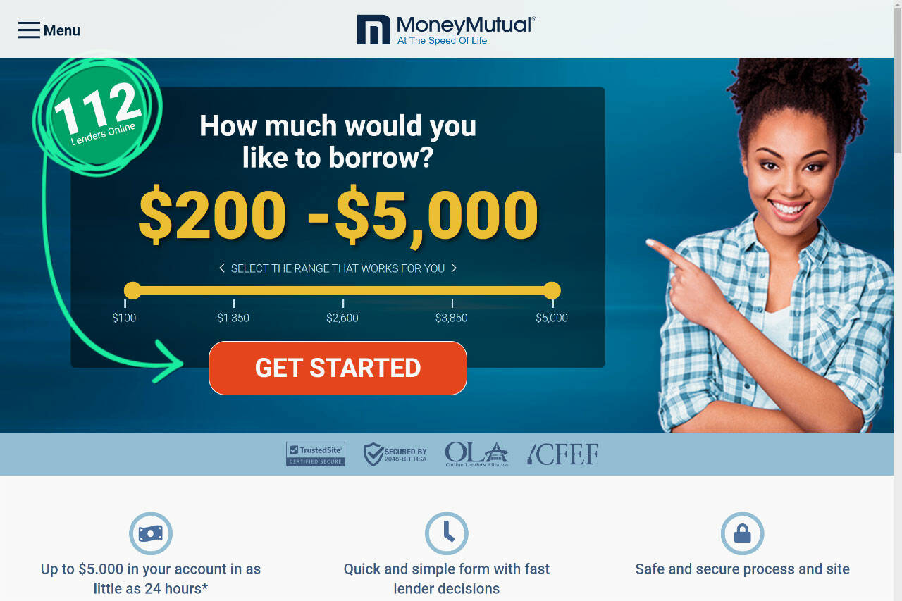 MoneyMutual, found online at MoneyMutual.com, is a payday loan website that lets you get $200 to $5,000 deposited into your account within 24 hours.