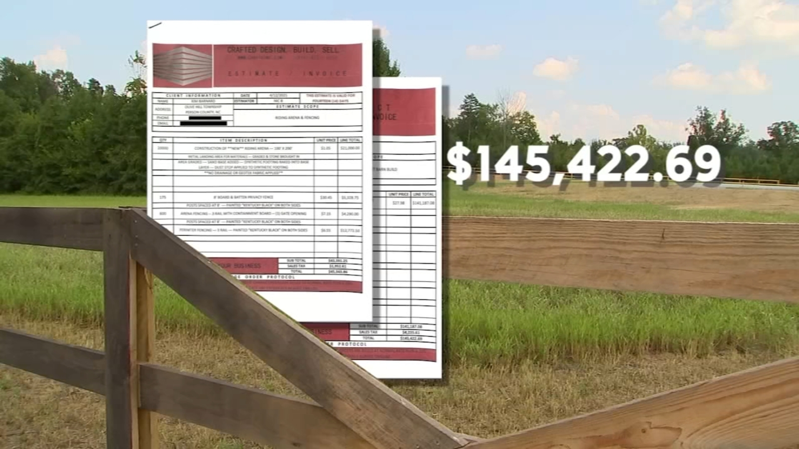The Barnards signed a contract with Baliva for more than $145,000 to build an eleven stall horse barn, with living quarters on their 26-acre property in Person County.
