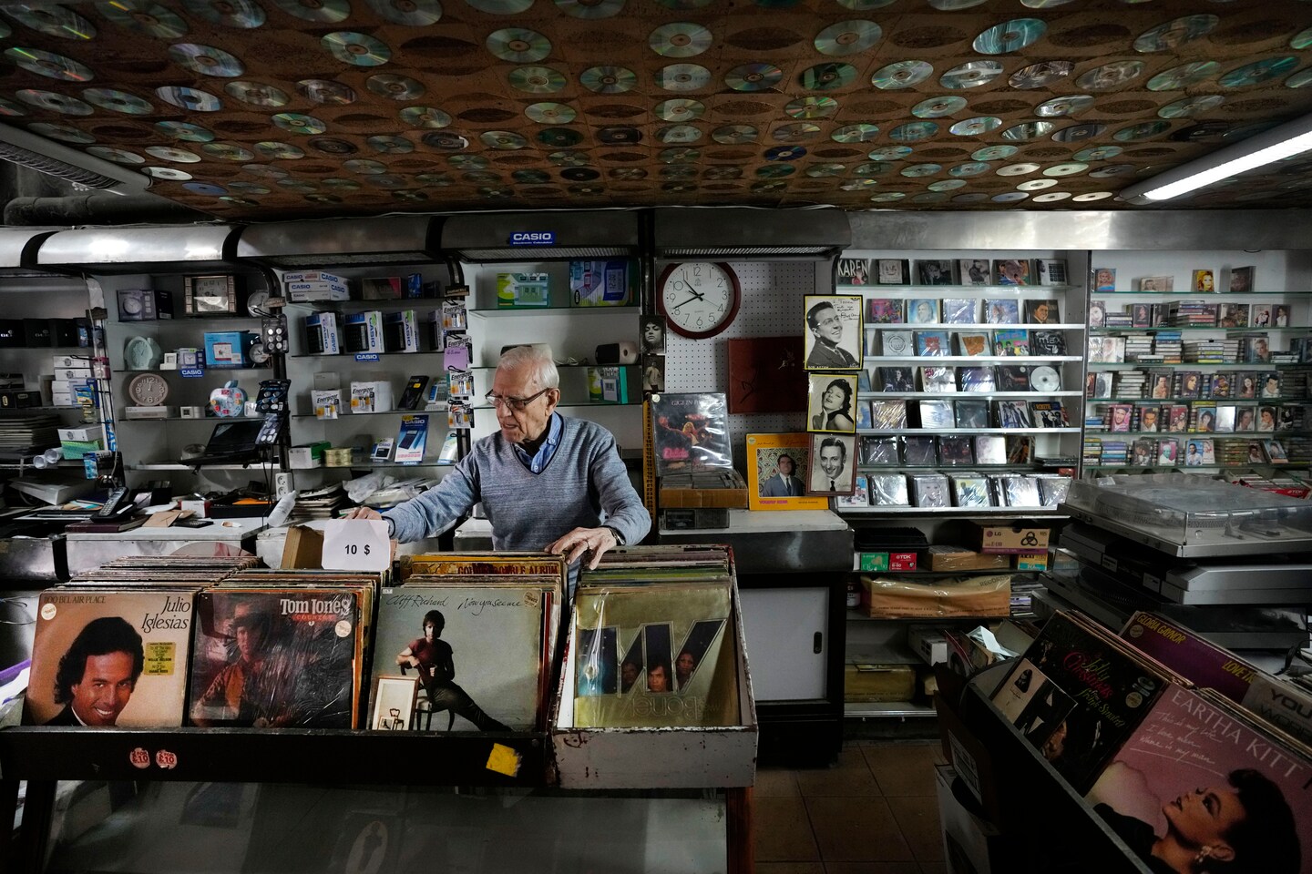 “We have hit rock bottom,” he said. Few customers come to his Tosca Music Shop and Electronic Supplies, which sells records and a variety of electronic clocks, calculators and watches. His business has dropped 75%.