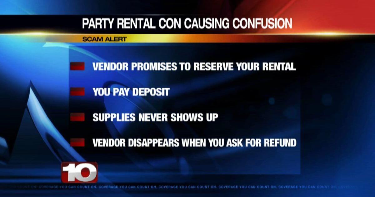 In this scam alert, the Better Business Bureau is getting reports of party hosts tricked by rentals.
