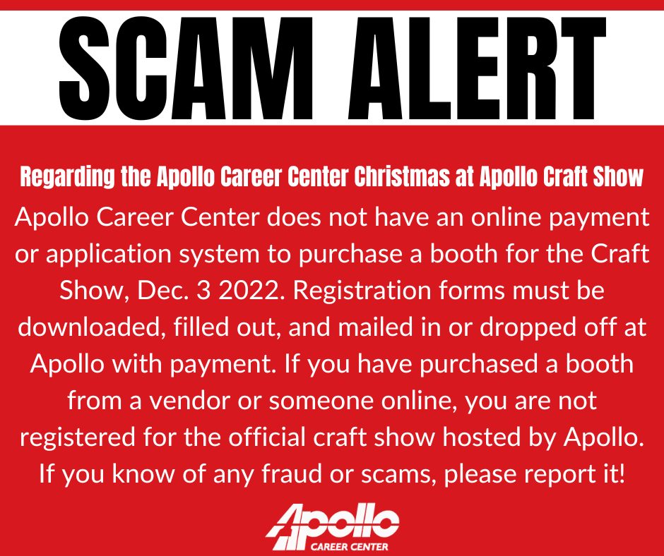 The Dec. 3 Christmas at Apollo craft show has reported an online scam pretending to be a registration and payment link.