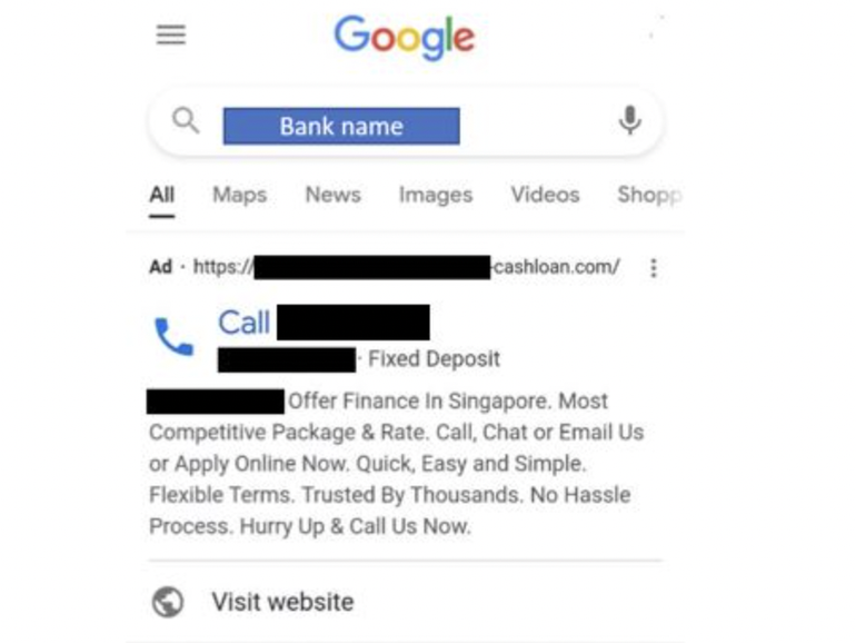 Singapore Police Force (SPF) said these phishing ads would pop up on Google when users searched for a bank’s contact number with the intention of seeking advice for various reasons. These ads would show up amongst the first few search results and contain fake contact details for the bank, the police said in its advisory note released Wednesday.