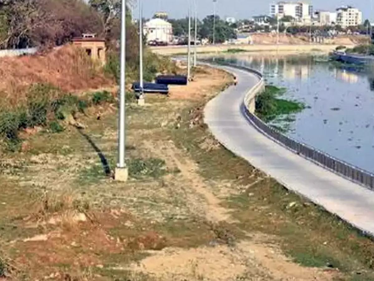 The project involved construction of a rubber dam to maintain its water level, a stadium, an amphitheatre for 2,000 people, cycle and jogging tracks, a play area for children and a musical fountain.