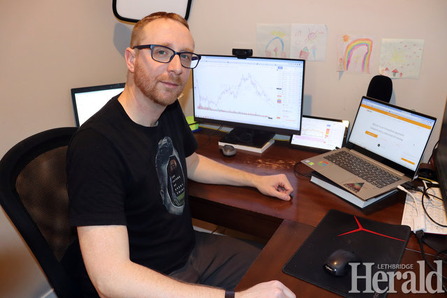 Bitcoin investor Scott McGregor works from his home office this week. McGregor is a big believer in bitcoin but suggests people do their own research before investing themselves.