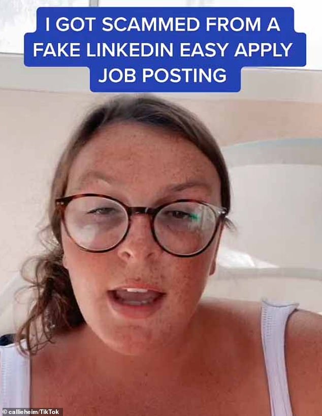 Callie Heim, 22, from Baltimore, Maryland, took to TikTok to reveal she was scammed by a fraud LinkedIn job posing as a real company